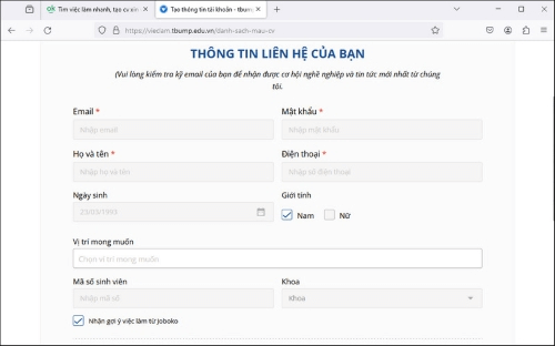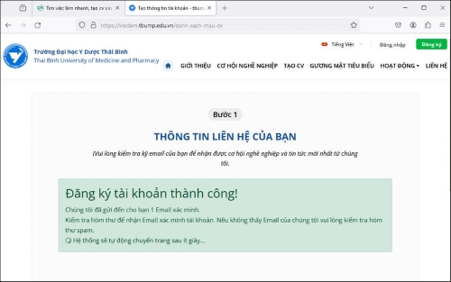 - Thông báo đăng ký tài khoản tạo cv xin việc tại cổng thông tin tìm việc làm Trường Đại học Y Dược Thái Bình.