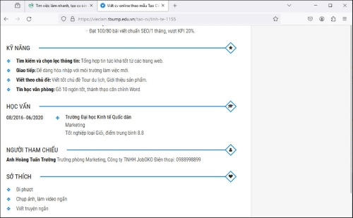 Bước 4: CV xin việc là một bản tóm tắt về quá trình học vấn, kỹ năng, và kinh nghiệm làm việc của bạn. Để tạo một CV hoàn hảo, bạn cần nhập các thông tin cơ bản và quan trọng sau:
