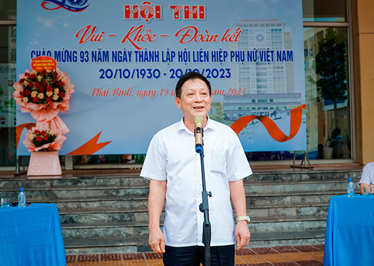 Thay mặt Tập thể lãnh đạo trường, NGND.PGS.TS Nguyễn Quốc Tiến - Bí thư Đảng ủy, Chủ tịch Hội đồng Trường đã phát biểu chúc mừng tới toàn thể chị em nhân ngày 20/10, đồng thời khẳng định vai trò và trách nhiệm to lớn của người phụ nữ thời hiện đại. Tập thể lãnh đạo trường đã ghi nhận và đánh giá cao thành tích mà chị em phụ nữ đã đạt được trong năm qua, kết quả đó góp phần quan trọng cùng Nhà trường thực hiện thắng lợi nhiệm vụ năm học, góp thành tích chung chào mừng 55 năm thành lập Trường Đại học Y Dược Thái Bình và 20 năm thành lập Bệnh viện Đại học Y Thái Bình.