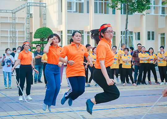 Ngay sau đó, hội thi "Vui - Khỏe - Đoàn kết" đã diễn ra sôi động tại sân khấu ngoài trời. Tham dự hội thi là 6 đội đại diện cho các đơn vị trong toàn trường. Các phần thi đã diễn ra sôi nổi, hào hứng, thể hiện sự đoàn kết, khéo léo, dẻo dai của các thành viên dự thi. Đặc biệt, Hội thi đã thu hút sự tham gia và cổ vũ của động đảo các anh nam giới là viên chức, người lao động trong Trường. Kết thúc hội thi, giải thưởng dành cho các đội như sau: